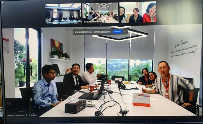 据悉,我校与柬埔寨合作时间久、范围广、程度深。2018年,我校与柬埔寨国家技术培训学院、亚龙智能装备集团股份有限公司合作共建柬埔寨亚龙丝路学院。自成立以来,已开设电气自动化专业和虚拟现实技术应用专业,累计培养柬埔寨学生732人,先后外派12位教师和管理人员。此次与柬埔寨服装培训学院的合作洽谈,标志着我校与柬埔寨在鞋服领域合作开启了新篇章。