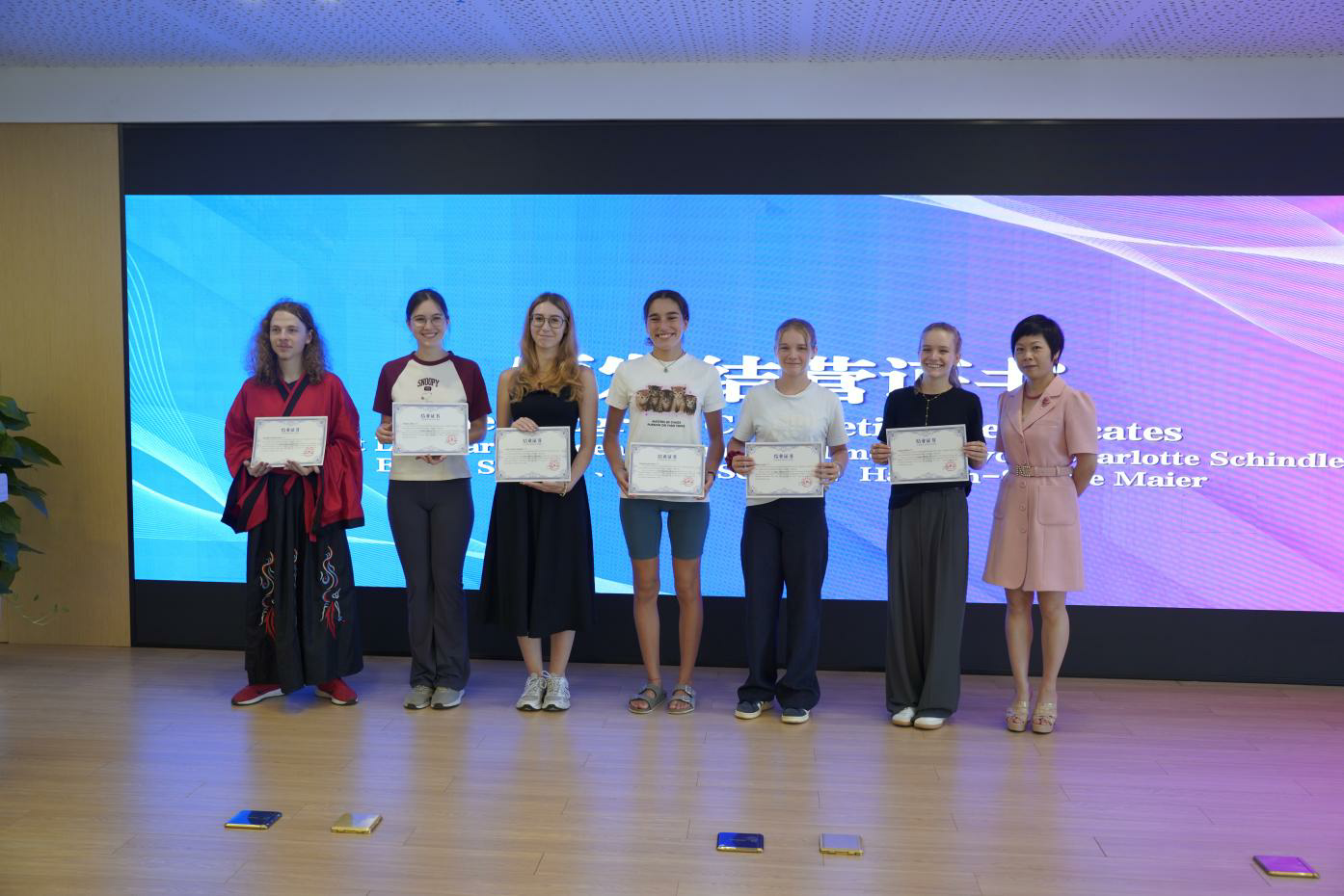 桥连东方韵,五感载谊归。结营仪式上,奥地利学子们重温了14天的点点滴滴,学生代表Emma Scheidl、Michael Thomas Junker分别分享感言,“此次温州职业技术学院设计学院设置的精彩行程与课程,不仅让我们学到了中文,更感受到了中国别样的传统技艺与中国人民的友好。”双胞胎学员Lena Taibinger和Julia Taibinger还自发制作了一段视频,表达他们在此次行程中的难忘回忆,并在社交媒体上发布传播、获赞破万。当11张结营证书发到11名学员手中,标志着跨越山海的文明对话结出硕果,奥地利格拉茨大学孔子学院的师生代表不仅提升了中文水平,增进了对中国生活美学及传统文化的理解,更在心中种下了一颗文化交融的种子。