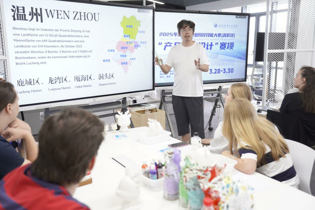 在温州,职教工坊锻造语言场景。结束北京段行程后,学员们转场温州,在温州设计学院省级美育实践体验基地,开启为期10天的“职教+中文”沉浸式学习。