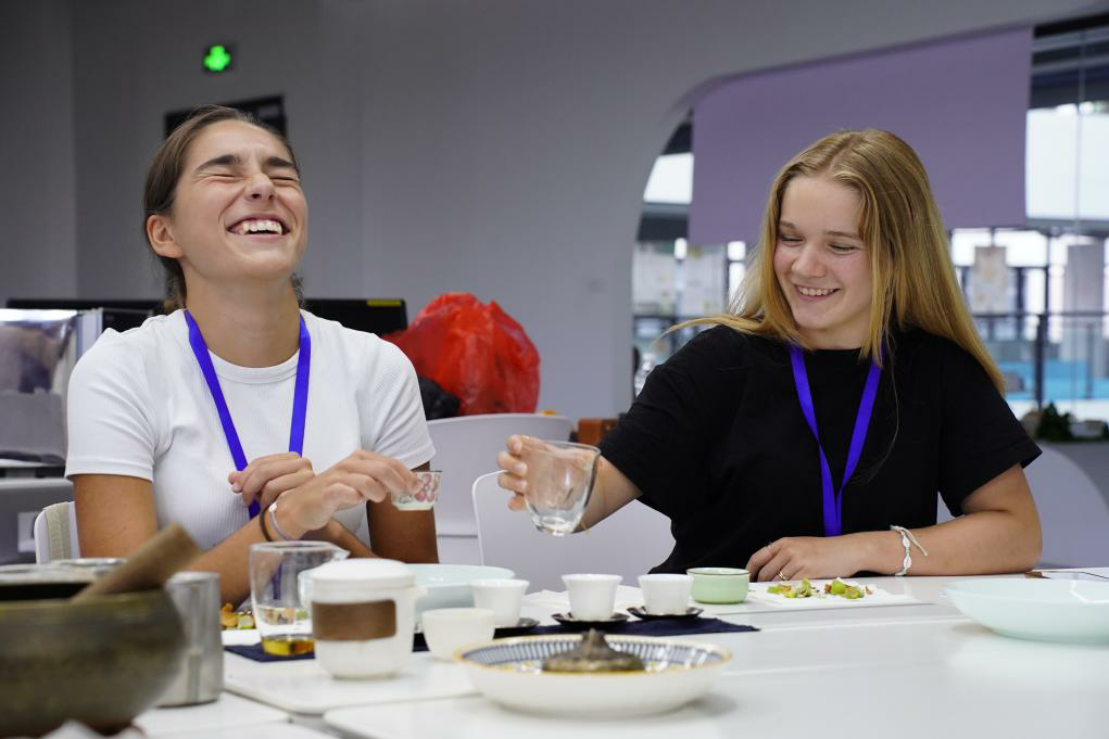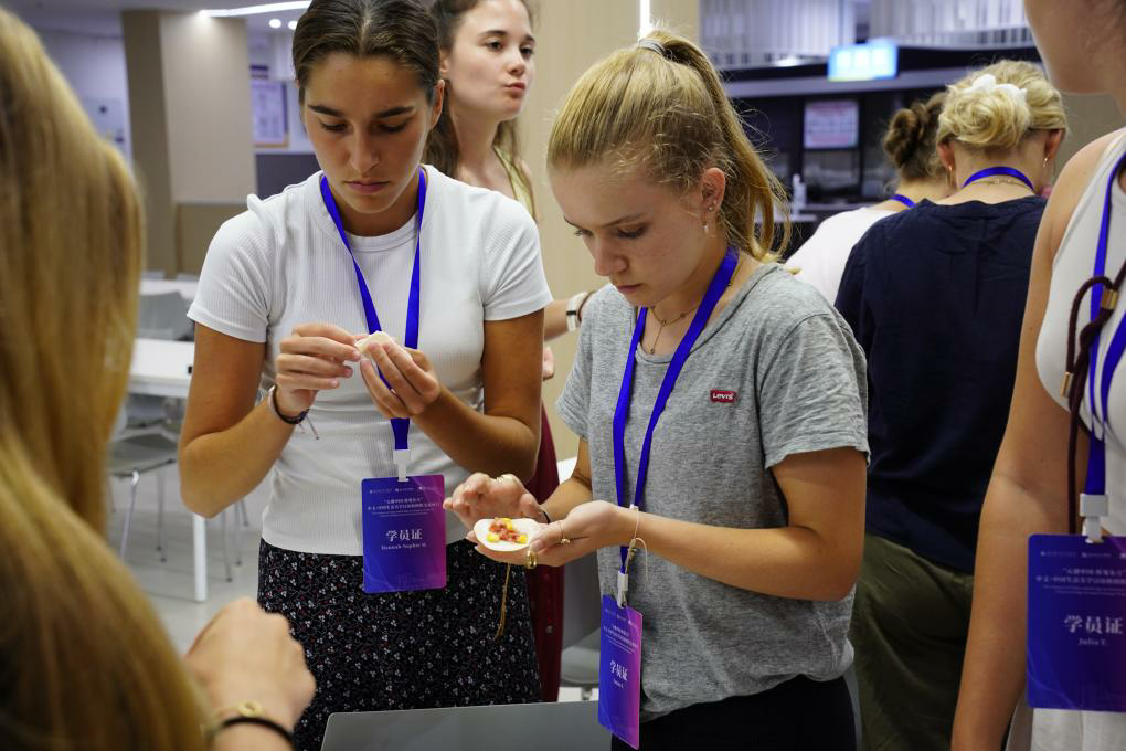 学员们通过“以茶会友”特色主题课程学习汉字结构与礼仪表达,感知“和”文化内涵;亲手制作中国传统食物“饺子”、温州地方特色“鱼圆汤”,进一步了解中国饮食文化。“好次西好次”,奥地利小伙李迪(Benedikt Leonhard Heiden)全程不停地说着“地道的”温州方言,引得满堂喝彩。