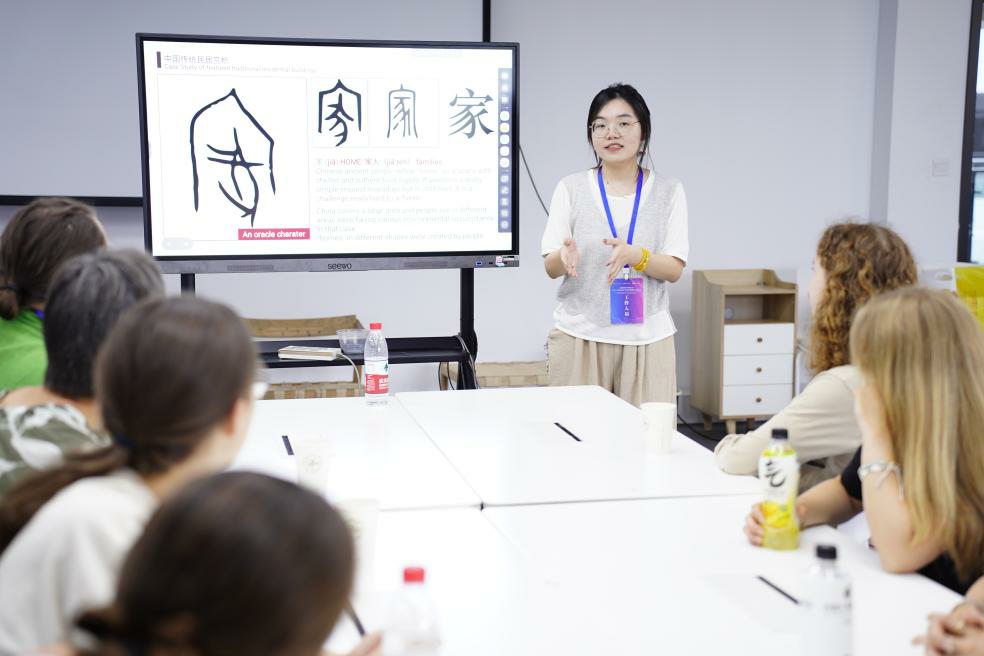 项目创新性采用层层递进的“术语→实景→技能”三阶教学方法,将特色案例赏析与节点分析融入专题课程,帮助学员们理解“亭”“台”“楼”“阁”等中国特色传统园林建筑术语。在“东方诗之岛”江心屿的实境游览中,学员们领略“天人合一”的传统人居美学;在“一榫一卯”实训工坊,通过制作筷子与榫卯节点,解码传统园林建筑的“严丝合缝”和匠人的“精益求精”。“当我的榫头最后一次完美嵌入卯眼,好像突然有点理解‘匠心’这个词到底意味着什么。”学员中年纪最小、年仅18岁的成员刘雯(Emma Schindler)感慨。