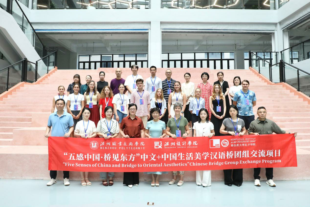 “五感中国·桥见东方”汉语桥团组交流项目开营仪式上,温职院副校长王志梅指出,项目以汉语为基因、美学为语境、五感为桥梁,通过“衣食住行艺”中国生活美学五大板块为切入点,创新性构建“技能实操+语言浸润”语言学习模式,让学员自然而然地熟悉专业汉语表达,并期待以此次项目的美学实践为契机,深化中奥青年文化交流,以温州为窗,助力世界青年读懂中国。