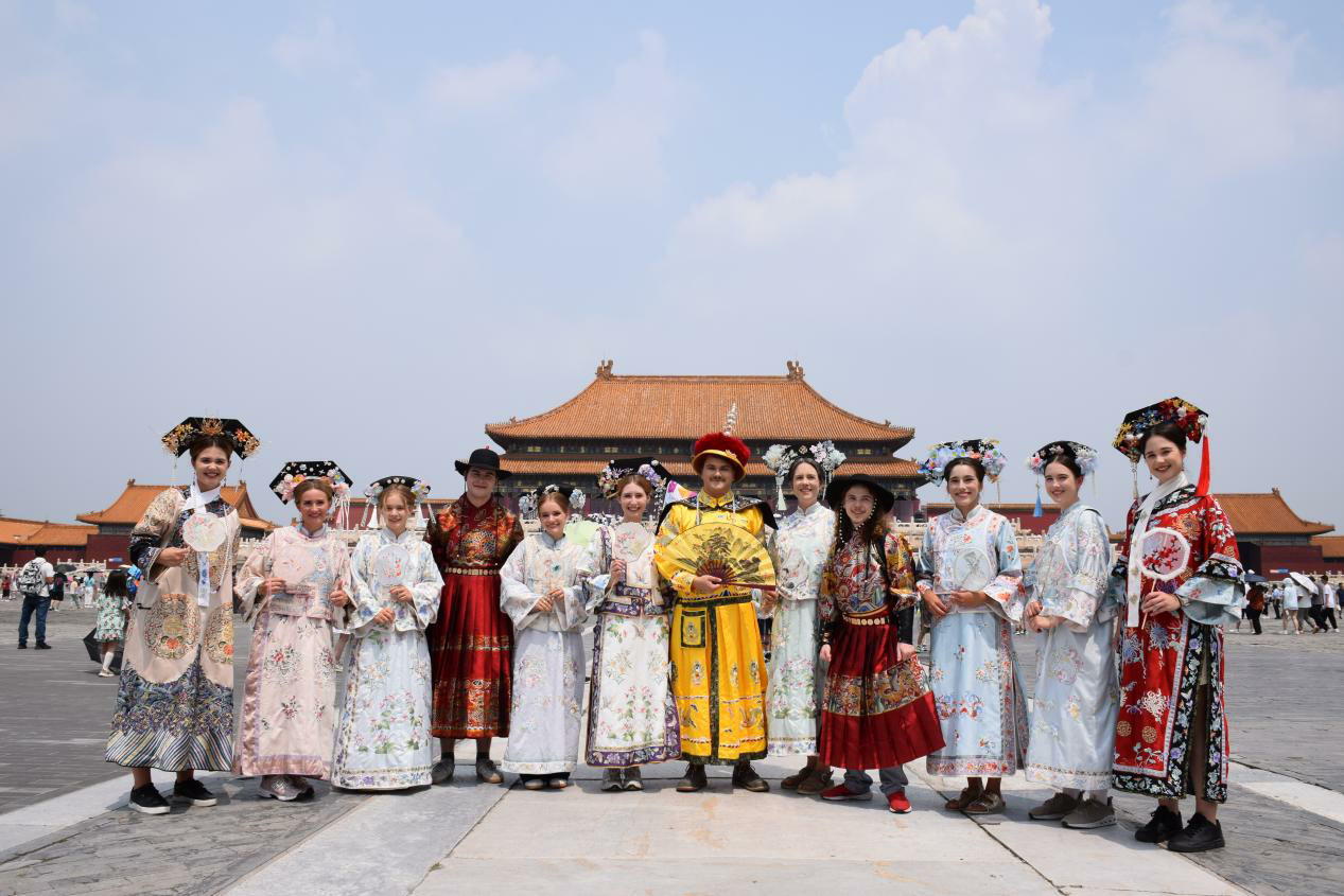 在北京,千年地标激活汉语基因。项目以北京的4天“文化速写”拉开帷幕,学员们攀登长城、游访故宫,学习“垛口”“飞檐”等特色词汇,品味中国历史的厚度与深度;穿行胡同,在市井烟火中感受日常生活的生动与人情味,并尝试使用并不熟练的中文去讨价还价、聊聊家常;夜游鸟巢,对比传统工艺与现代科技的异同,探讨“中国建造”的传承创新。“当我们真的攀登上好汉坡、身着清装游览故宫、亲身融入中国的日常生活,语言就像一把钥匙,打开了我们对于中国文化的无尽好奇”。带队老师安丽雅(Andrea Allmer)表示。