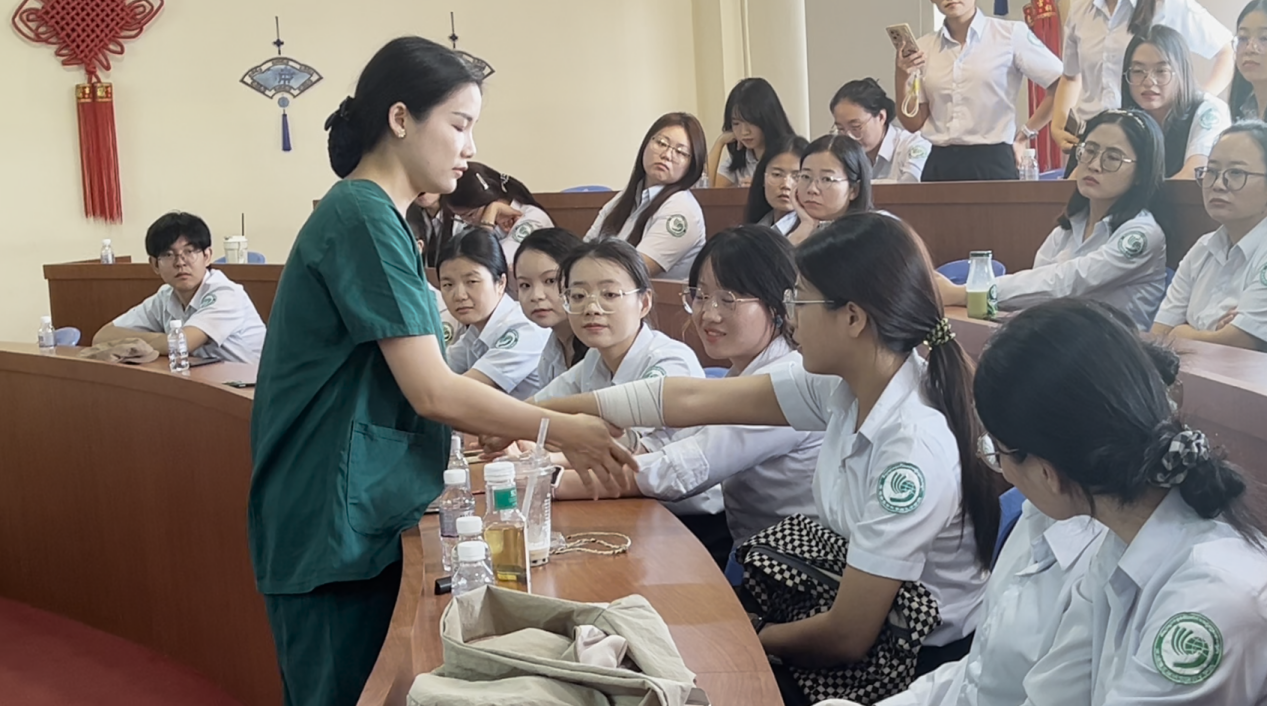 为提升在柬孔子学院教师及志愿者的安全防护意识与应急自救互救能力,助力海外孔子学院建设,4月1日,浙江东方职业技术学院智慧康养学院外派柬埔寨海外工程技术学院教师杨莉芝,赴柬埔寨王家研究院孔子学院开展《实用急救知识科普:解锁日常安全技能》专题培训。孔子学院柬方院长陈统崇(Taing Mengchhong)、中方院长吴滔出席,学院全体教师积极参与。